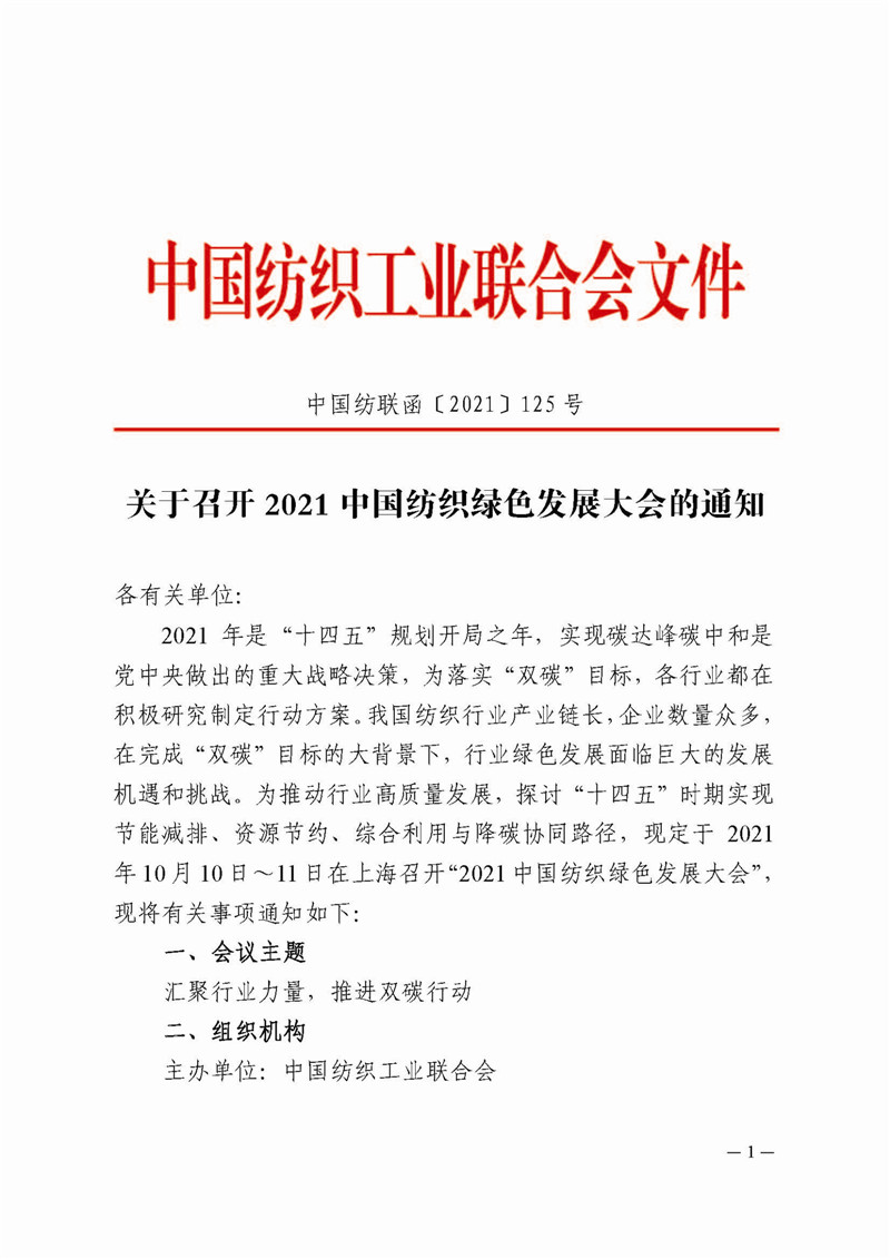 探寻“双碳”达标新路径 2021中国纺织绿色发展大会10月在上海举行